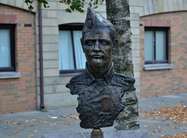 Beside Queen Victoria is a stone column with an eagle on the side. It records the American Expeditionary Force. Soldiers from this army unit were based in Belfast prior to the D-Day landings on Normandy beach in 1944. Look for the plaque beside it with a re-dedication by President Clinton. Though many of the memorials in Belfast record conflict and loss, this one also records peace and gain.