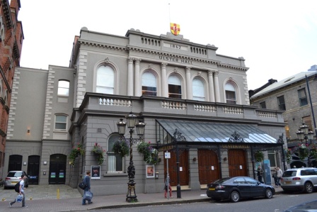 Next door to the Europa Hotel we can see a rather different building, the Grand Opera House. It opened in 1895 and has played host to some of the greatest names in theatre and music. They include Italian tenor Luciano Pavarotti who made his British stage debut here in 1963.