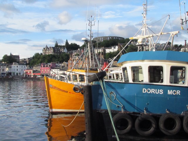 Turn towards the ferry terminal and look at the colourful boats and restaurants on the quayside. Oban brands itself as the Seafood Capital of Scotland. A variety of species live in the nearby waters, especially shellfish. Catches and menus change daily.