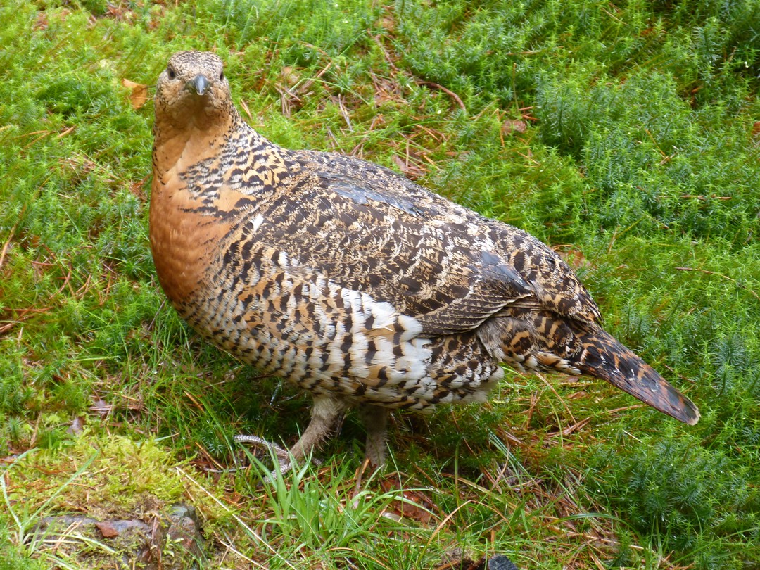 Capercaillie, whose males can grow big as a turkey, are found in woodland but are becoming increasingly rare, although a female hen was seen around the Visitor Centre in 2012 and 2013. The ptarmigan, a high mountain grouse which is a mixture of grey, brown and black in summer and totally white except for its tail and eye-patch in winter, has also occasionally been seen here.