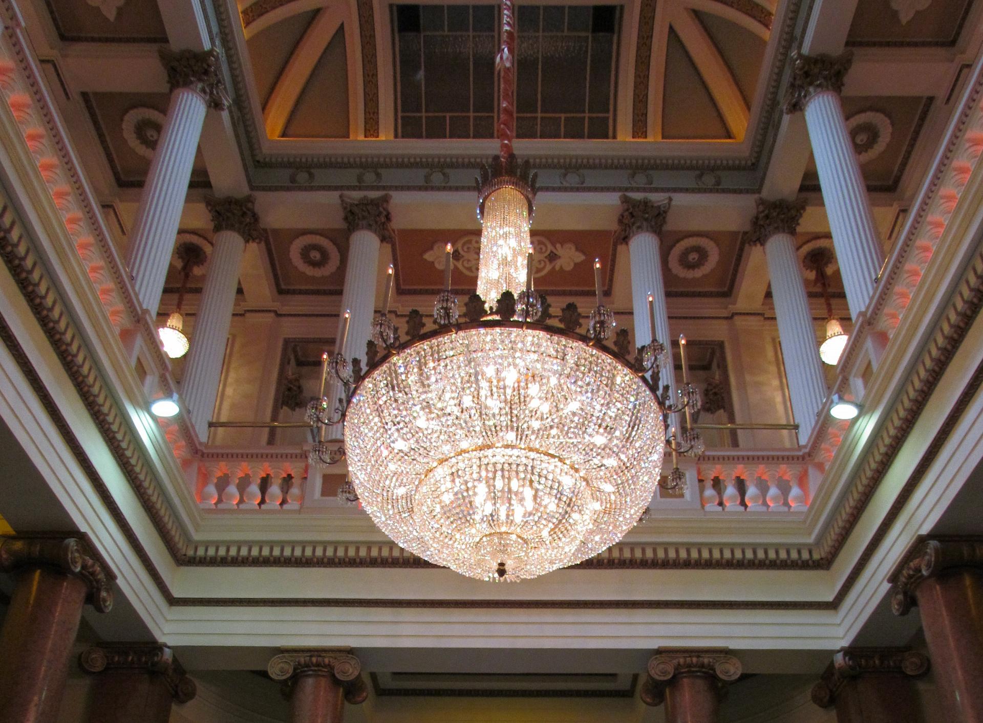 Shortly after it opened this building was described in the Fine Arts Journal: “The front of this banking-house, a really magnificent structure, exhibits a Corinthian hexastyle portico ninety-five feet in width, of great general beauty, and having a bold but not obtrusive projection; the columns of which it is composed, six in number, as the name of its style indicates, are thirty-five feet high, of very graceful proportions”.