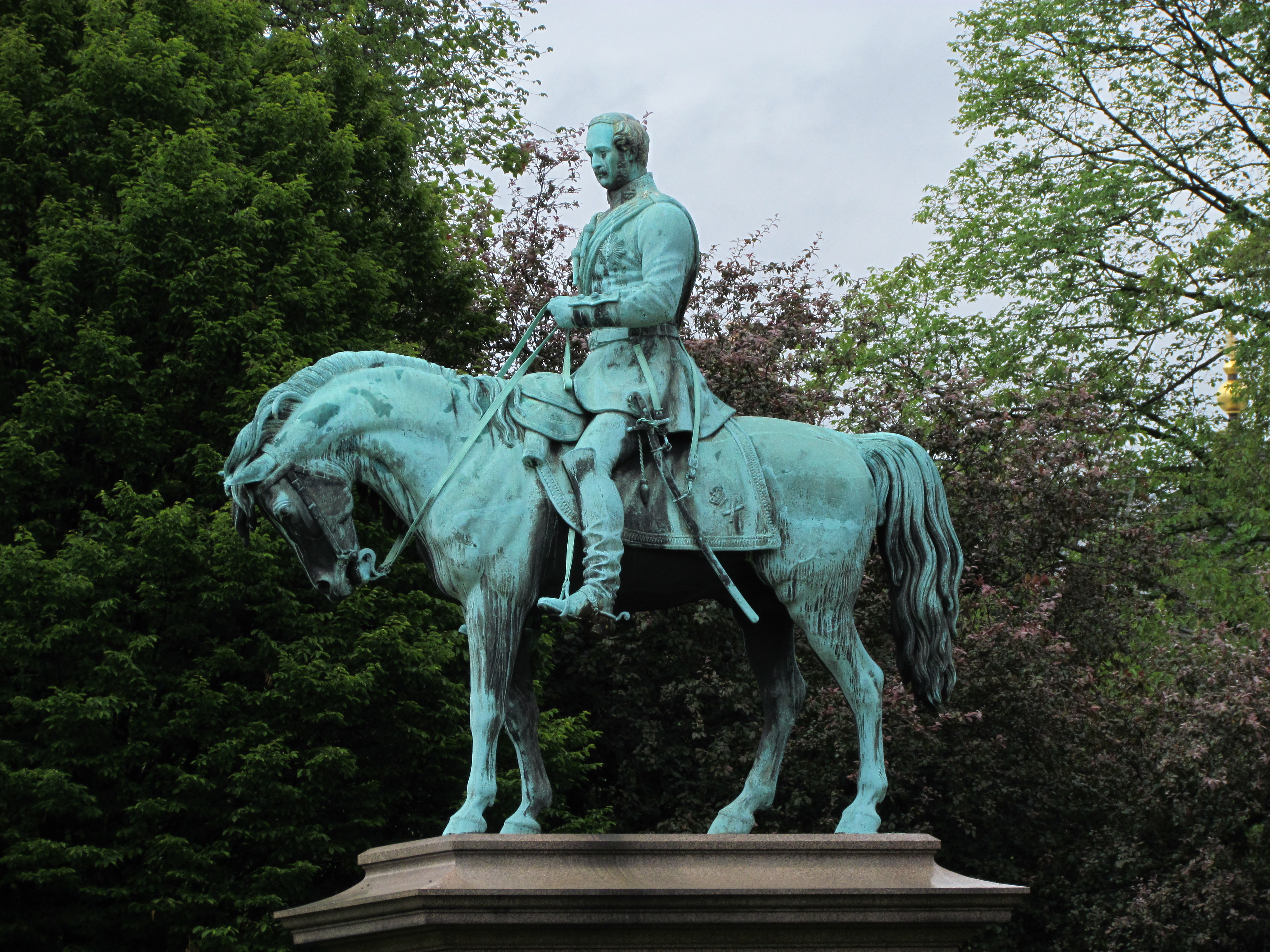Here is a magnificent statue of Arthur Wellesley, better known as the first Duke of Wellington. The Duke was one of the major military and political figures of the nineteenth century. This statue shows him mounted on one of his favourite horses, a battle steed named Copenhagen, after the capital city of Denmark.