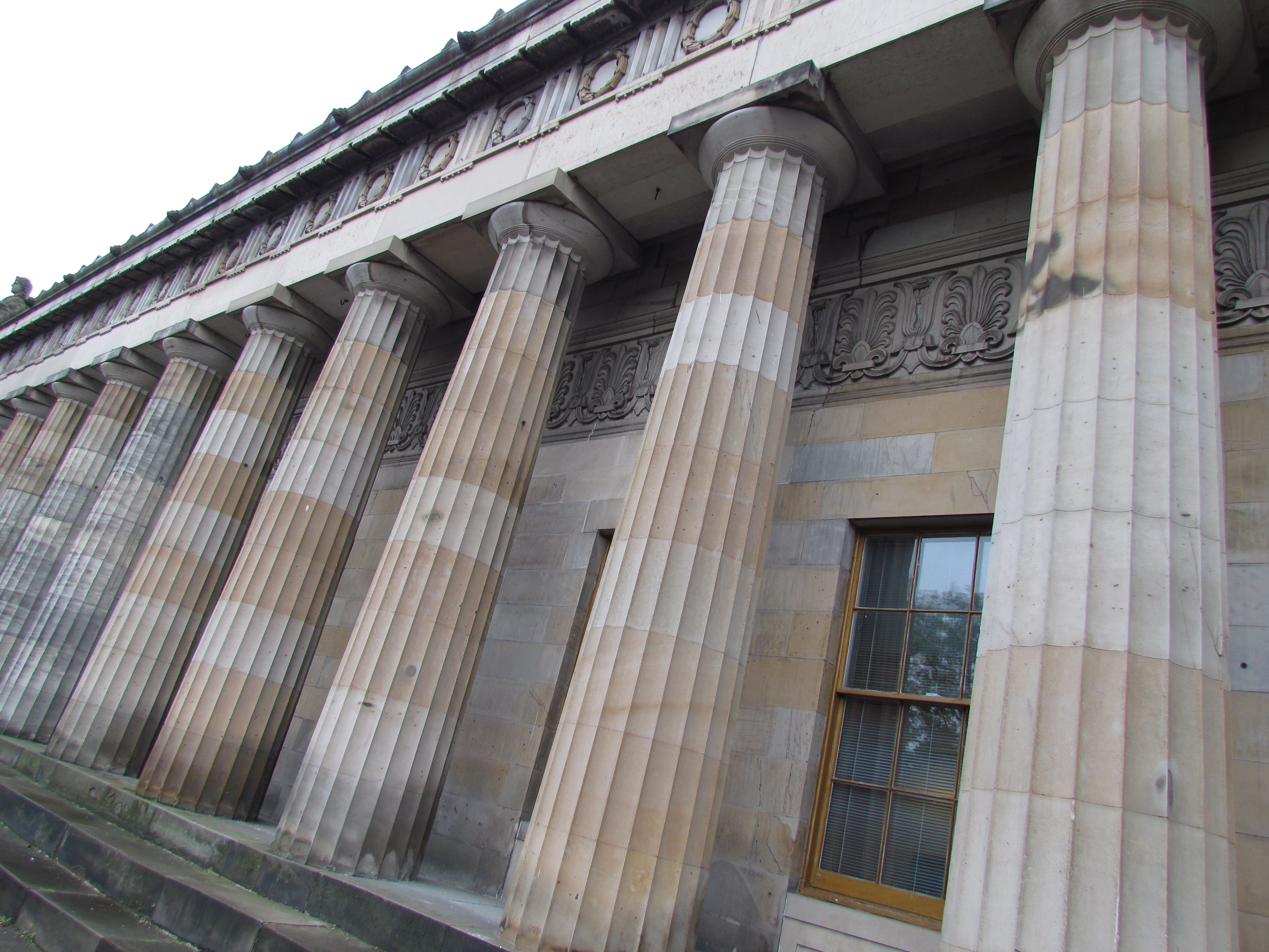Take time to look at the gallery buildings for typical neo-classical features - rows of columns, wide steps and delicate patterned stonework. In ancient times this building style was an expression of wealth, power and prestige.