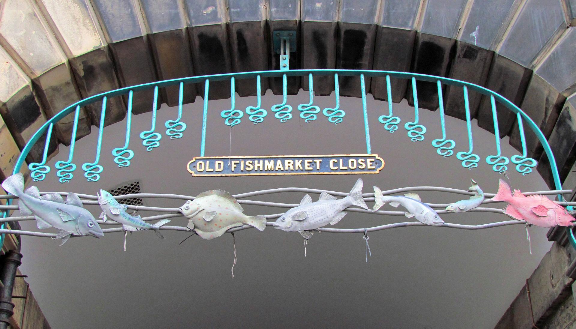 Old Fishmarket Close is named after a fish market that used to be held here. It was once described as “a steep, narrow stinking ravine”. Today the decorative entrance to the close shows what kinds of fish were available, including plaice, cod and herring.