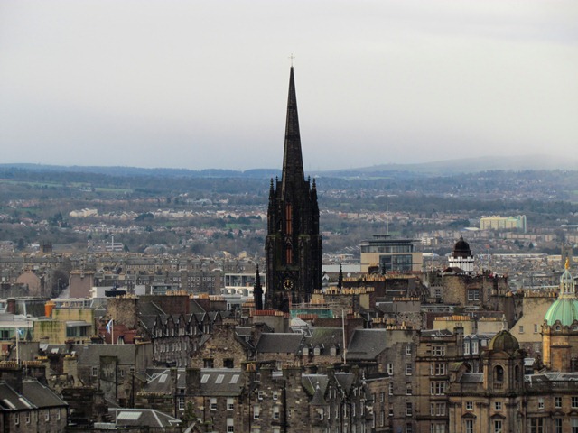 From almost anywhere in Edinburgh you will see the Castle looming high above the city. As we can see the Castle is on an ideal defensive location, high up and with panoramic views for miles around.