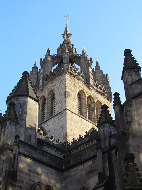 Go back out of Riddell’s Close and turn right down the Royal Mile staying on the right hand side. Use the trafic lights to cross George IV Bridge and then stop outside of St Giles’ Cathedral.