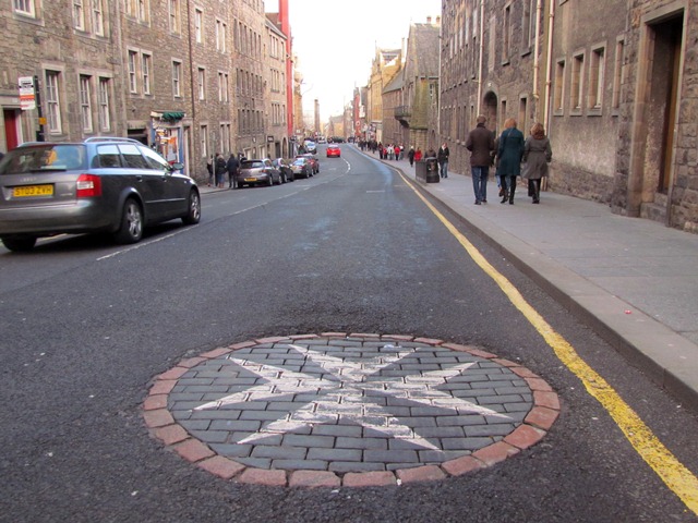 After the battle, Scotland feared reprisals so a wall was built around Edinburgh to protect the city. Look carefully at the Royal Mile here for a set of metal studs in the road. They mark where a gate was built in the wall to allow access in and out of Edinburgh.