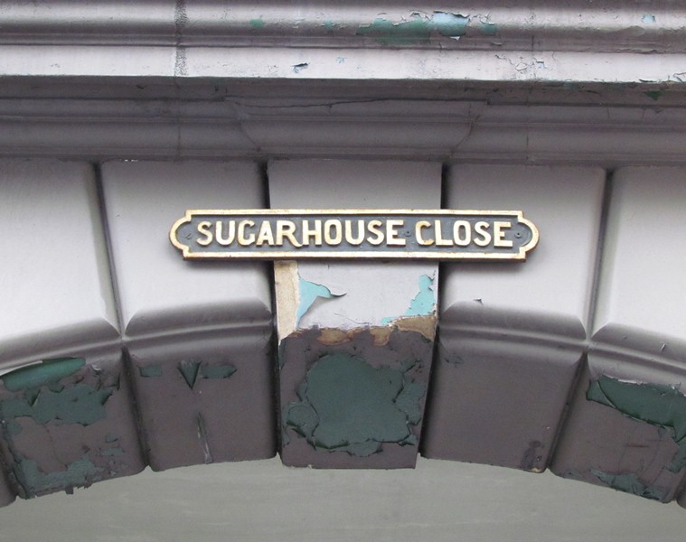The land at Sugarhouse Close was originally owned by the Earl of Dunkeld. Between 1752 and 1824 a sugar refinery was based here. Raw cane was brought into Leith from the Caribbean and processed here to make granulated sugar. The work was hot, dangerous and physically demanding.