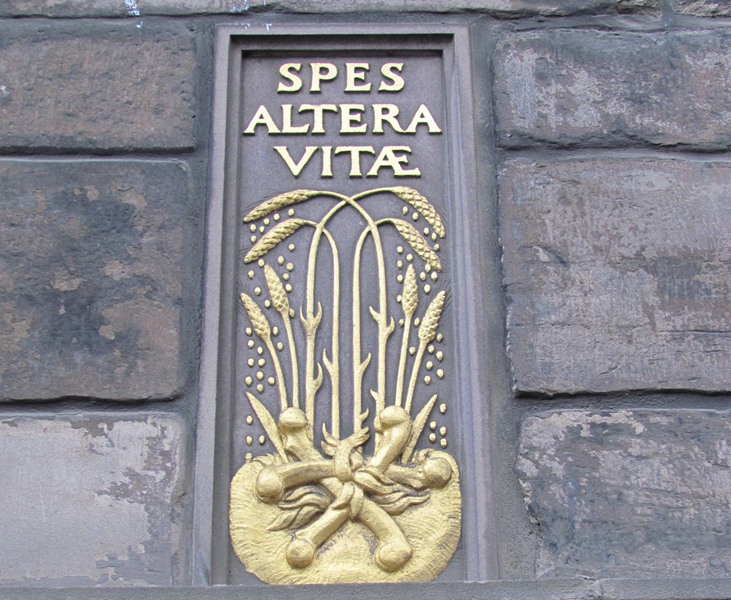 Wheat sheaves can be found in other parts of Edinburgh, including Dean Village. The ‘spes altera vitae’ motto also appears elsewhere on the Royal Mile, such as in Advocate’s Close.