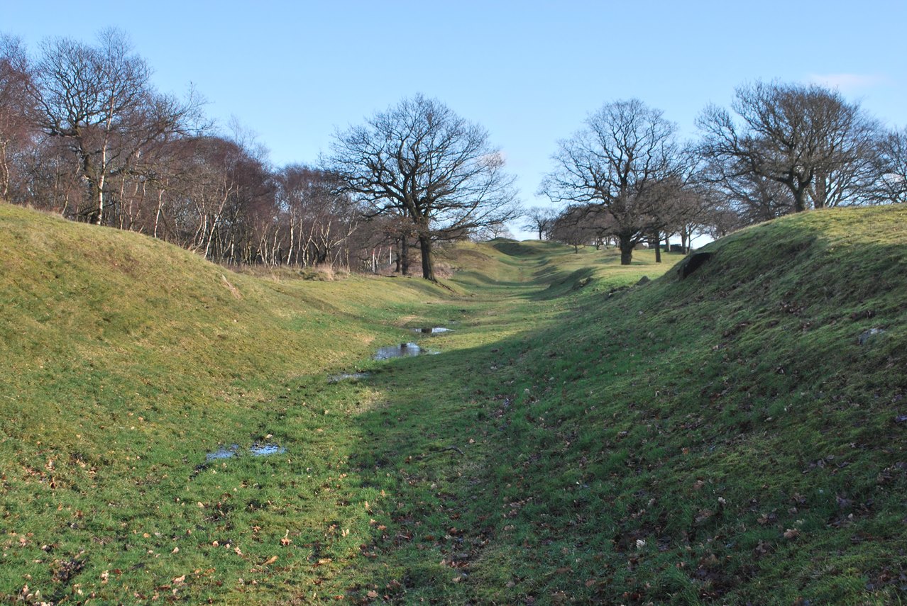 This causeway across the ditch leads into Rough Castle Fort, one of the smallest but bestpreserved of the forts along the wall.