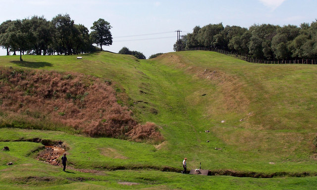 Go through the gate to the top of the mound from where you can look into the ditch.