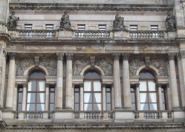 Also notice the classical statues along the roof. They may look old but they were, in fact, commissioned for the building from a contemporary Scottish sculptor - Alexander Stoddart. Look out for ‘Italia’ and two versions of ‘Mercury’. These statues pick up the Classical references that Alexander ‘Greek’ Thomson was using 150 years ago. The whole development is a remarkable blend of old and new, public and private and a great credit to the Glasgow of today.