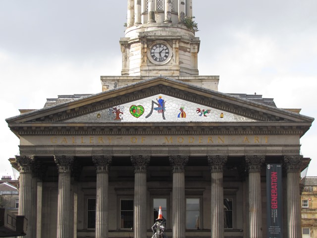 With your back to the City Chambers, leave George Square from the far left corner, turning left into Queen Street. After about 100 metres stop outside the Gallery of Modern Art.
