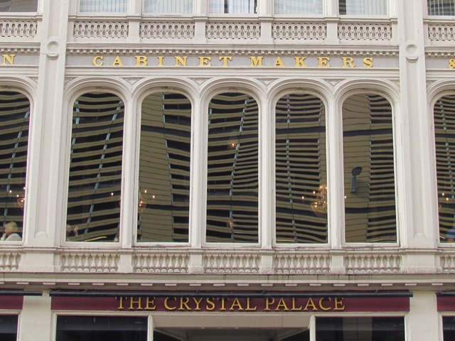 This large pub originally opened as Gardner’s Furniture Warehouse, an upmarket furniture store. It was renamed The Crystal Palace many years later - a reflection of its importance in architectural design.