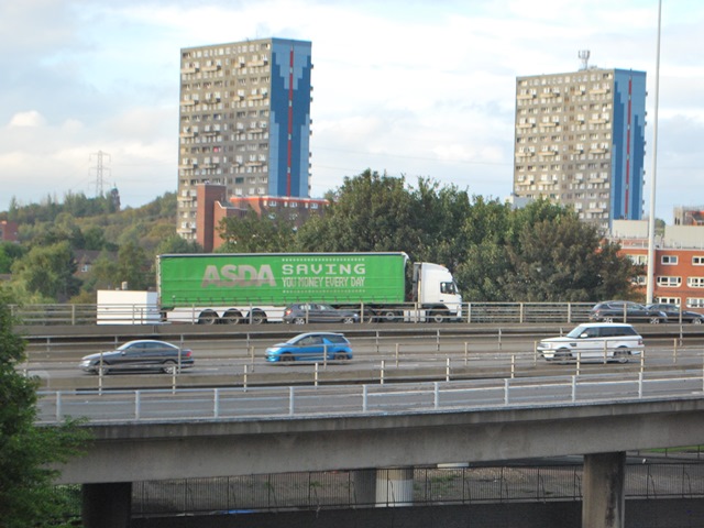 Further damage was done by construction of the M8 motorway. Part of it is further west down St Vincent Street. It is in a cutting at this point and not easily visible – but you can probably hear it. In many other places the M8 is an elevated motorway. This maximises the damage, visually and in terms of noise. Urban motorways also separate communities. The 6-lane M8 isolates the very pleasant suburbs of Glasgow’s West End and University from the city centre.