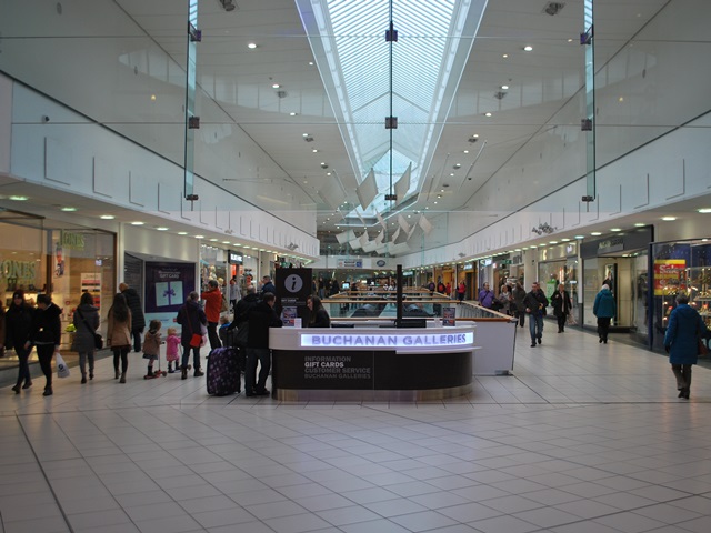 This stop has many other tributes to the transformation that has taken place in Glasgow in recent years. Beside the Concert Hall is the Buchanan Galleries Shopping Centre, just one of several modern shopping complexes in Glasgow. Glasgow is now the second-largest shopping location in the UK after London.