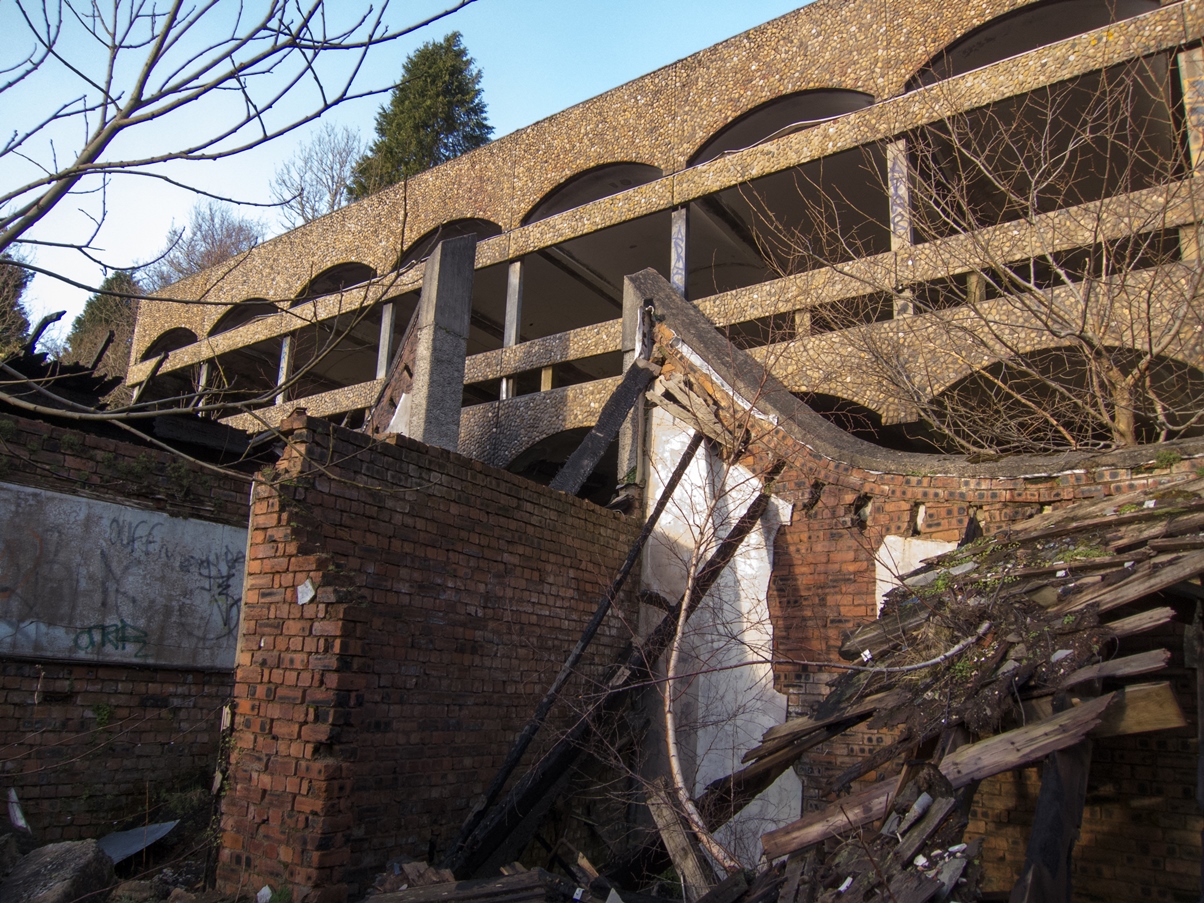 The surrounding newer buildings still stand, gradually decaying and collapsing. The altar is cracked, the chapel crumbling and the staircases burned out. Fences have been erected all around and signs warn off trespassers. But despite the official abandonment people still come here. The graffiti and empty beer cans are evidence of this and there are late-night tales to be told too.