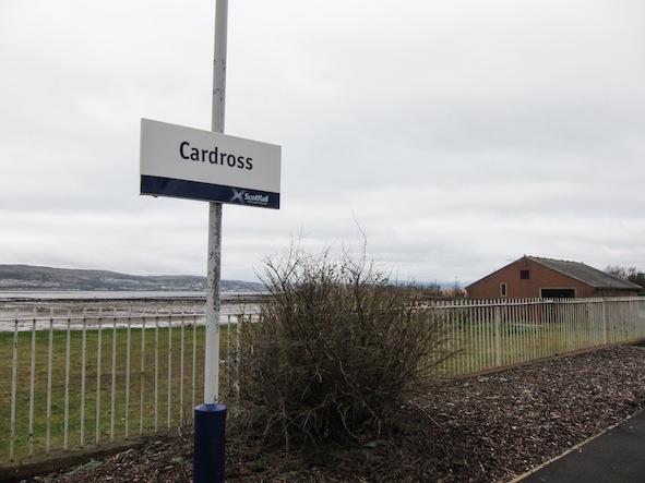 From Cardross railway station turn right into Station Road and head towards the village. At the war memorial turn left onto Main Road. Keep to the pavement on the left side for about 200 metres. Shortly before the red telephone box and second pedestrian crossing find a boulder with a plaque to the left of the pavement.