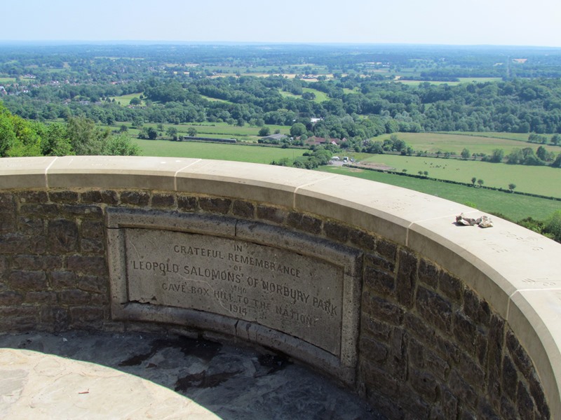 Do take time to explore Box Hill Fort. To return to the Salomons Memorial, pass the small car park beside the fort and head towards the National Trust Café and Visitor Centre. With these buildings on your right, follow the road as it sweeps to the left around the main car park. The Memorial itself will emerge on your right.