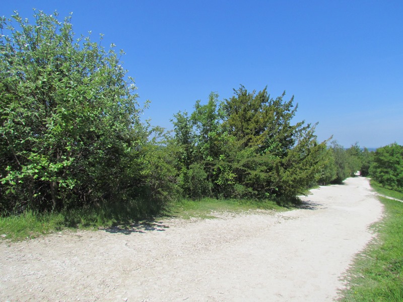 We are now on the highest point of Box Hill, some 194 metres (364 feet) above sea level. This ridge along the top is called The Whites. We can see why from the path of pure white chalk that streaks along the summit.