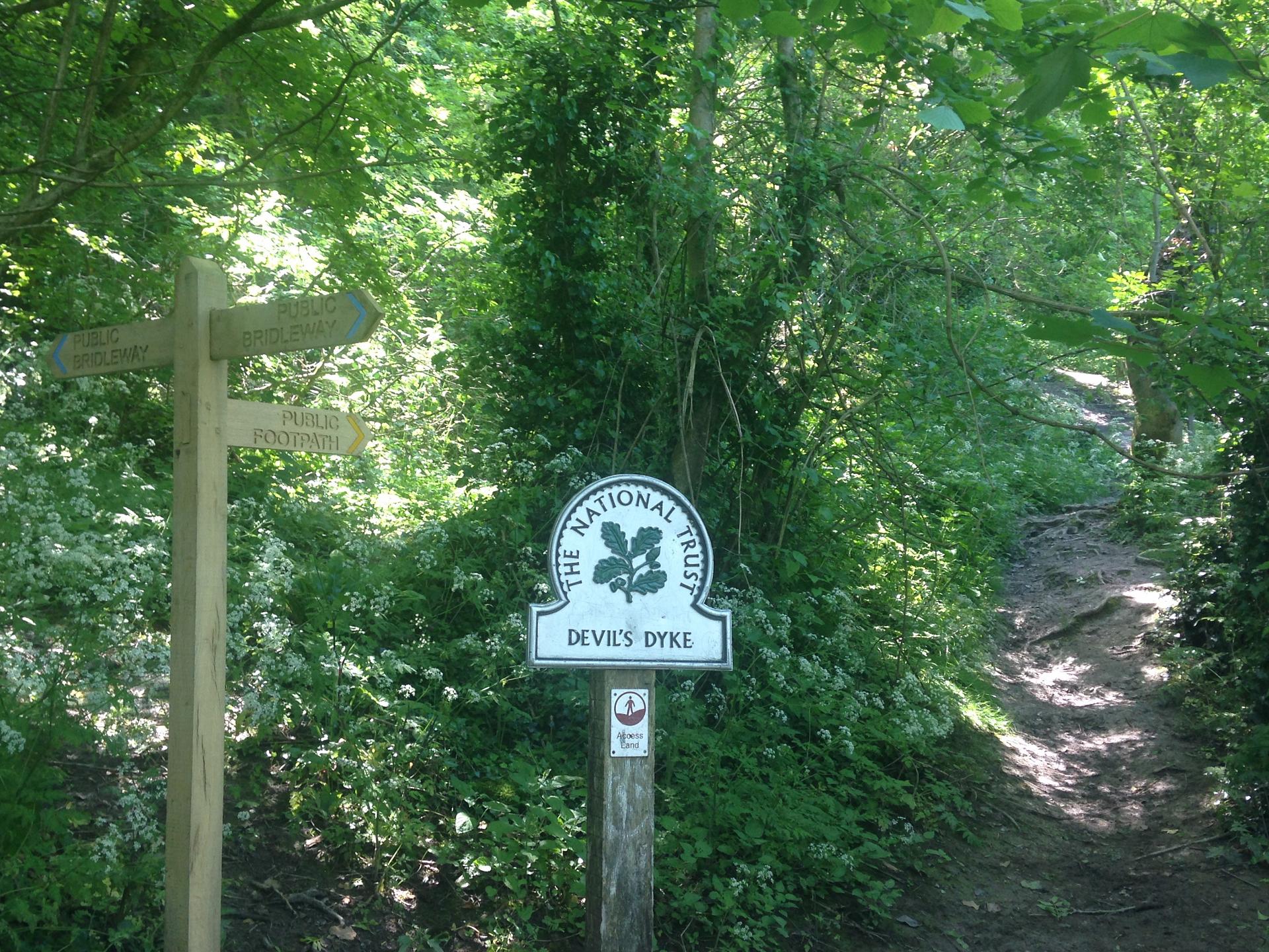 From the car park pass the Devil’s Dyke pub on your left. Go past the bus turning circle and follow the path alongside the road. Go through a gateway on the left and continue down through the trees into the valley. Go through a kissing gate and find a bench with a view of Devil's Dyke below.
