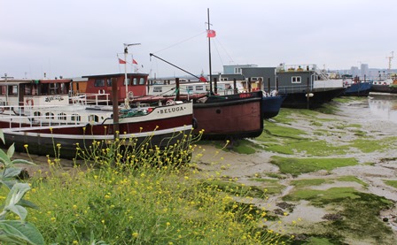 Clay was also used to make bricks and several brickworks developed along the river. Just a little downstream from here we’ll pass through Hoo Marina Park, an estate of prefabricated houses. The site was an old brickworks. From beside the river, bricks were transported by barge to the growing centres of London, Rochester and Chatham.