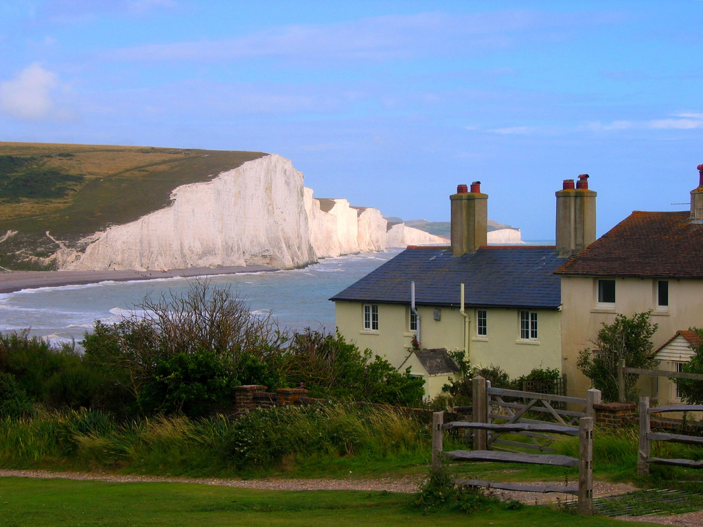 In the distance the bold white cliffs of the Seven Sisters dip and rise like a fairground ride, and stand as a symbol of British fortitude.