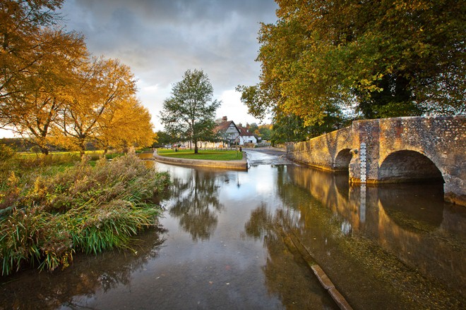Continue along the lane into Eynsford village. Stop near the bridge and ford.