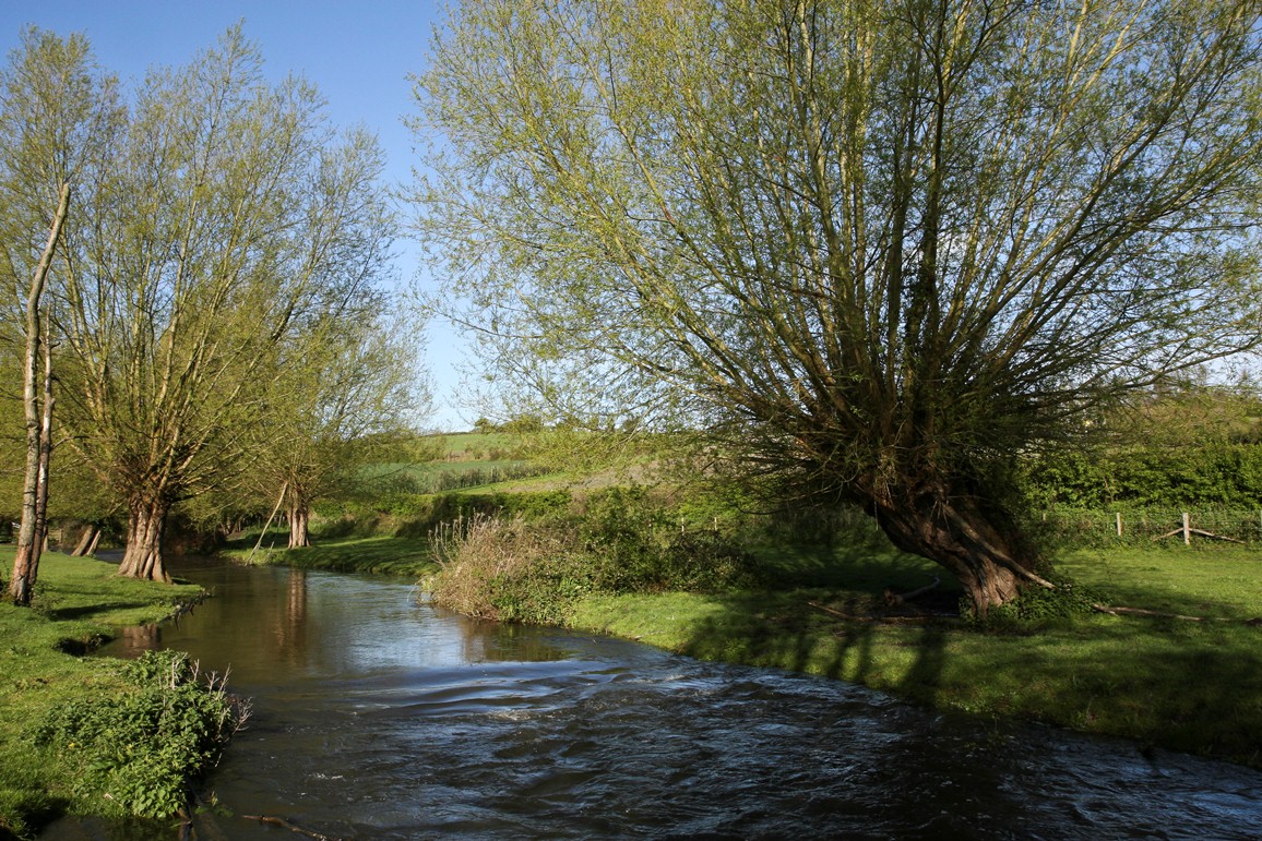 From the Roman Villa continue straight along the road. Stop just as the road rises uphill and a smaller road joins to the left. You should have a good view of the meandering River Darent.