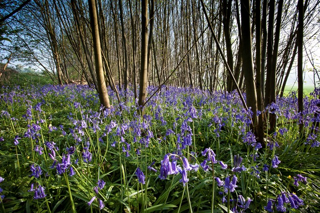 Traditional management is still practised in these particular woods. The chestnut trees are harvested every 15 to 20 years by cutting off the multiple stems close to the ground where they grow from the base. This ancient technique, known as coppicing, allows increased levels of sunlight to reach the woodland floor so warming the soils and triggering bluebells to burst forth and create a dramatic blue carpet of flowers in Spring.