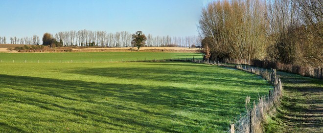 This land is better suited to growing grass continuously, known as permanent pasture, which needs to be grazed with livestock. Looking across the river between the tree branches you may spot a flock of sheep or a herd of cattle grazing these water meadows.
