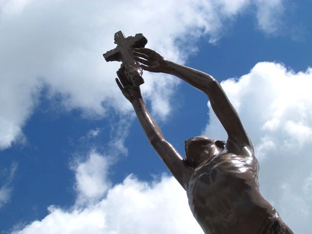 This is the Dover War Memorial built to commemorate the victims of the First World War. The sculptor, Richard Guldon, had fought in the trenches in France during 1914 and 1915. His sculpture depicts the figure of 'Youth' grasping a flaming cross.