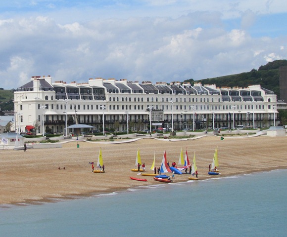 If you look back along the seafront you can see the difference between the pre-war and post-war buildings. While the ornate terraces date from the 1830s, the brown terraces you passed earlier are a complex of flats called The Gateway. They were built after the Second World War when much of Dover needed rebuilding after heavy bombing.