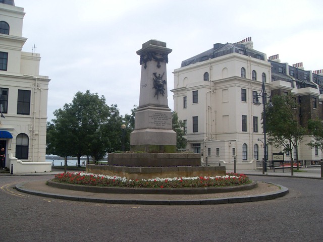 Continue along the seafront then turn right into Wellesley Road. Pass the ferry mosaic on the corner and follow the road left into Camden Crescent. Stop at a safe place across from the war memorial in the middle of the traffic island.