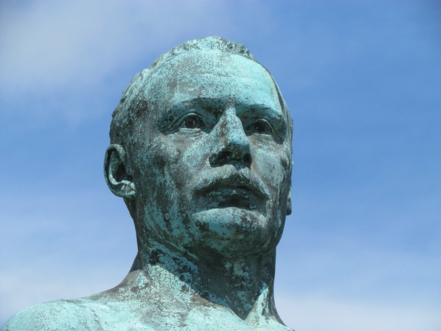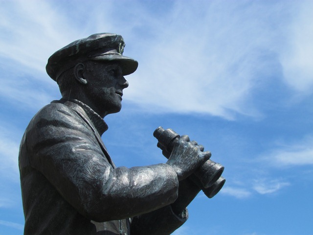 Continue along the seafront. Stop beside the statue of a sea captain looking out to the water.