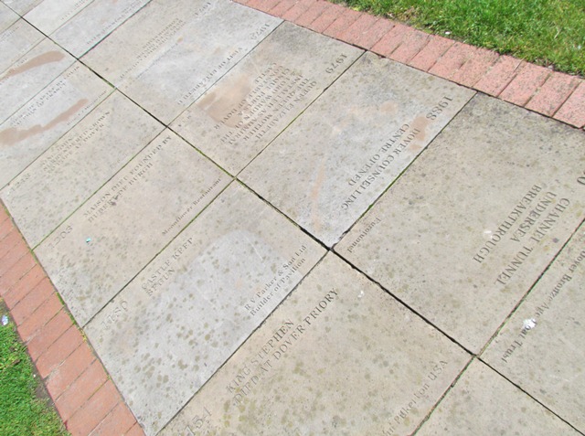 We are now in Pencester Gardens where we can take a relaxing stroll through Dover’s history. This set of flagstones inscribed with dates is the Timeline Pathway.