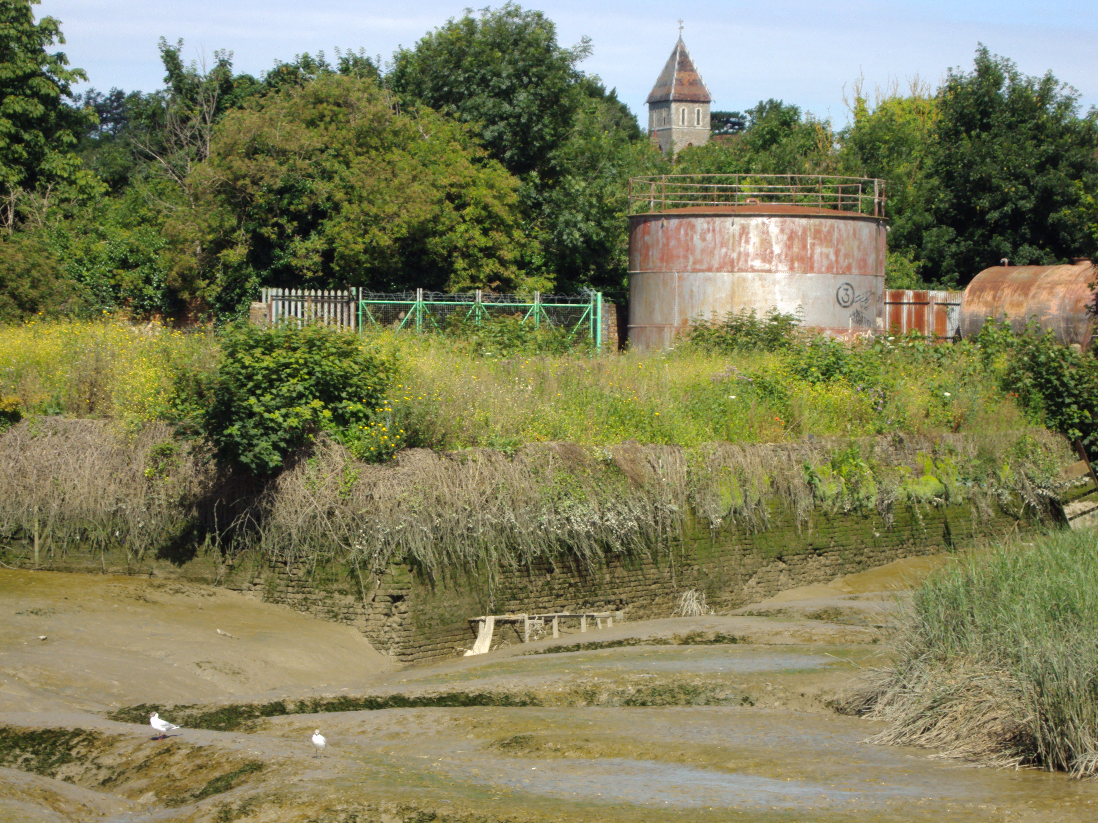This entire area has of course been changed greatly since by human intervention. The islands are used today as allotments but you can see some of the last remaining evidence of Faversham’s gunpowder industry further up the river at Chart Mill which we’ll visit shortly.