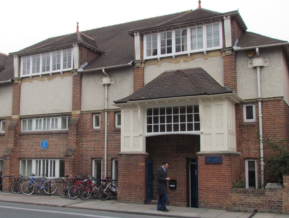 This redbrick and stone building used to house the Oxford Young Men’s Christian Association. Look up at the middle set of windows and over to the right and you can see a stone carving with the initials YMCA and a date carved into it.