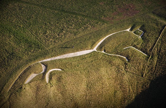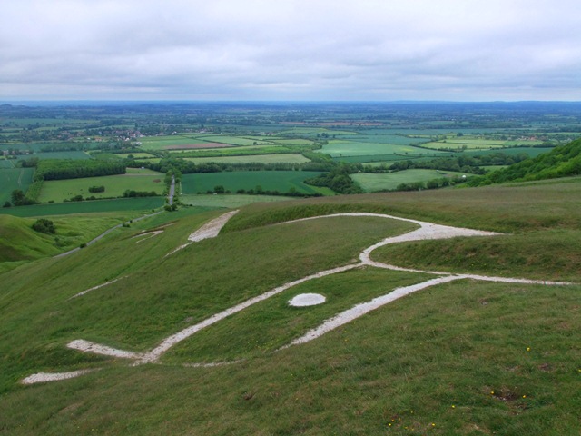 It may also, at 3,000 years old, be the oldest chalk figure. It’s about 114 metres long (that’s 374 feet) and is a sort of stylised representation of a horse, though some would say a dragon. It’s formed from deep trenches filled with crushed white chalk. We used to think that – like the castle – it was the product of the Iron Age, but recent dating using a scientific technique called Optically Stimulated Luminescence (which is based on radiation levels in the soil) now suggests that it is earlier than this and dates back to the late Bronze Age.