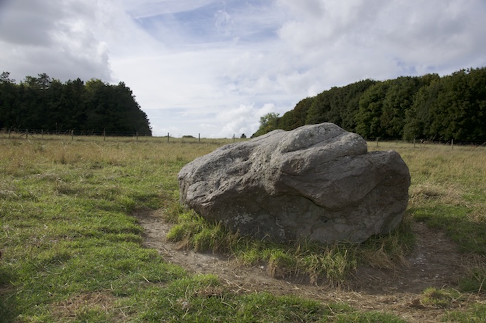 This fat, lumpy boulder is sarsen, a hard sandstone. It’s the same kind of rock used at Stonehenge for the largest stones. In the Stone Age, it was stood upright as a standing stone.