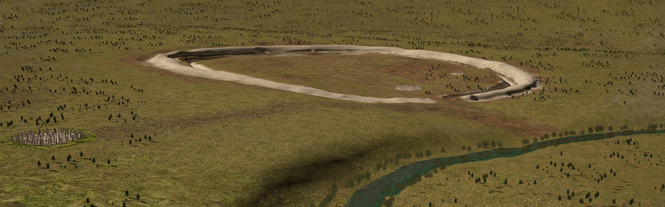 The central stones at Stonehenge are aligned for Midwinter sunset. It’s possible that rituals began here at Durrington at Midwinter sunrise, and then a procession made its way along the river and to Stonehenge in time for sunset.