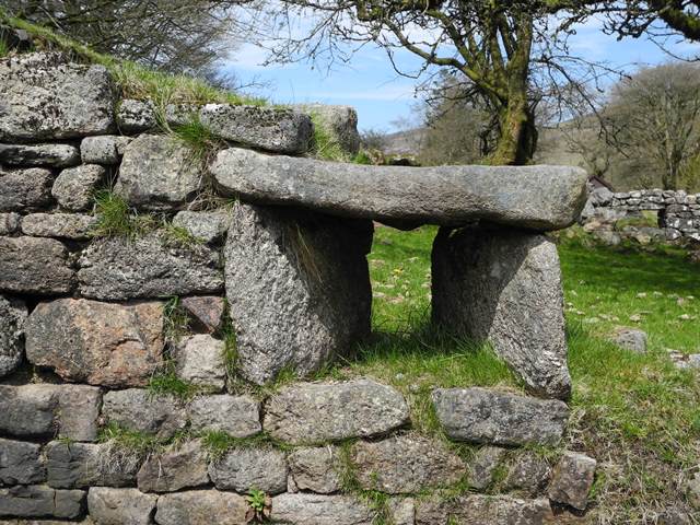 Before leaving the farm, look out for a granite trough at the end of the pond. The gouged-out hole may have been used as a mouldstone for casting tin ingots.