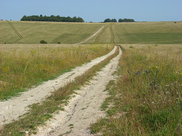 Take the track opposite the entrance to the village which is signposted as a Byway. After about 300 metres and just before a major crossroads, take the minor track to the left across the grassland which is signposted Byway and Imber Range Path. This will take you across Copehill Down. Stop somewhere along this path on the open grassland.