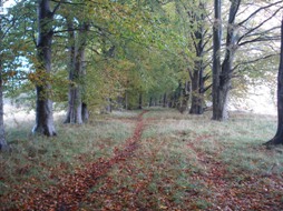 From the track, turn right along the footpath through the avenue of trees. After about 200 metres is a break in the trees and it is obvious that you are standing on an embankment.Stop here.