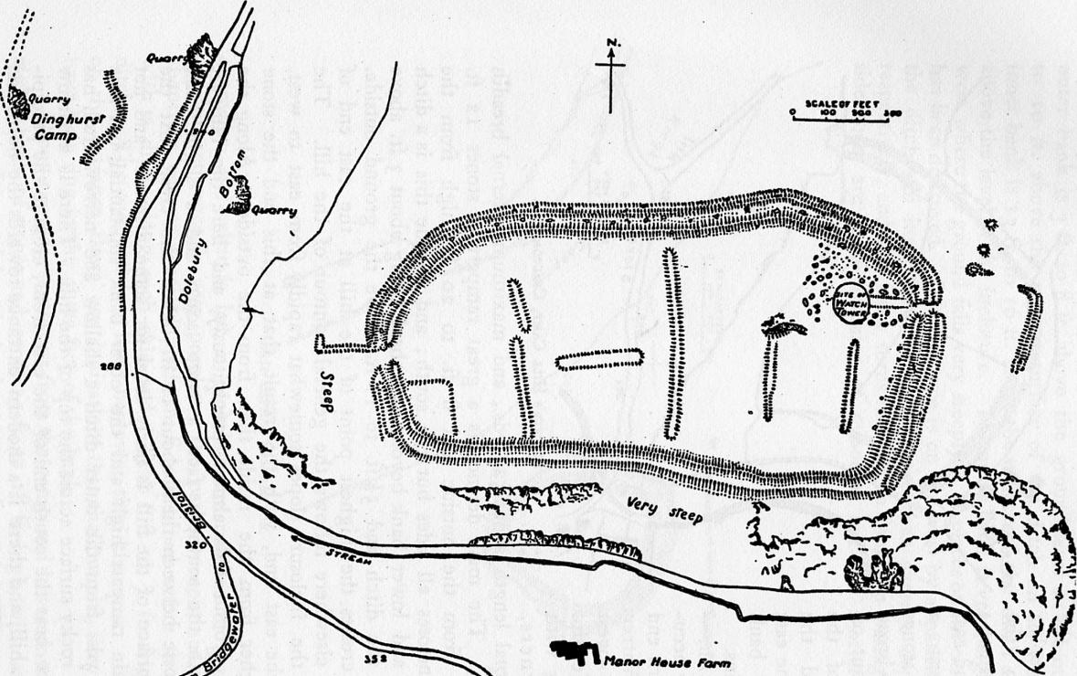 The fortifications here at Dolebury consist of an extensive series of ramparts, which take full advantage of the natural topography of the area. See if you can spot these raised embankments of land running around the edge of the high ground.