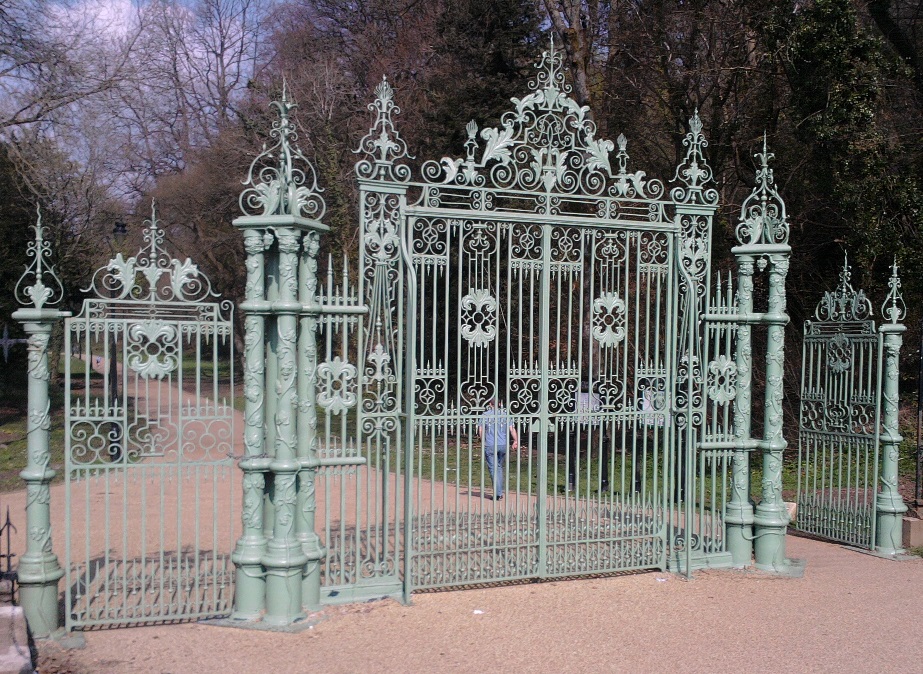 As we pass through the gates, look at them in more detail. Can you see a delicate pattern of grapes and vine leaves? They are a good example of the skilled iron moulding practised at the ironworks in nearby Blaenavon.