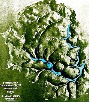 Relief model of the Elan and Claerwen watershed (1891) Courtesy of Powys Digital History Project
