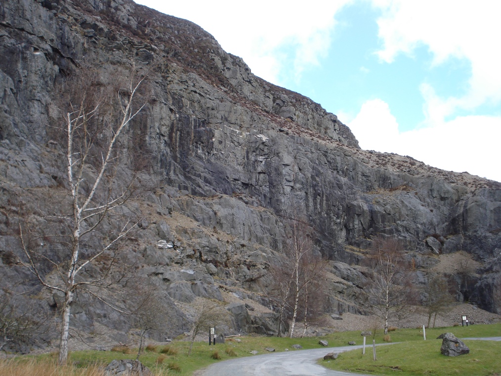 The rocks in this quarry, which formed 420 million years ago during the period of geological time known as the Silurian, were suitable for the body of the dam wall. Look up at the quarry to appreciate just how much stone was extracted to build the dams.