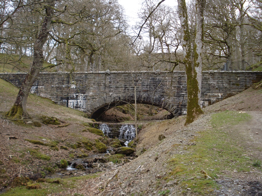 Continue across the bridge and around the other stone building. Turn left past the building and go through the gate. Follow the track as it climbs gradually upwards through Upland Oakwood vegetation (see Stop 9). Where the track forks bear left and follow it downhill. At the bottom turn left through the gate and stop by the two bridges.