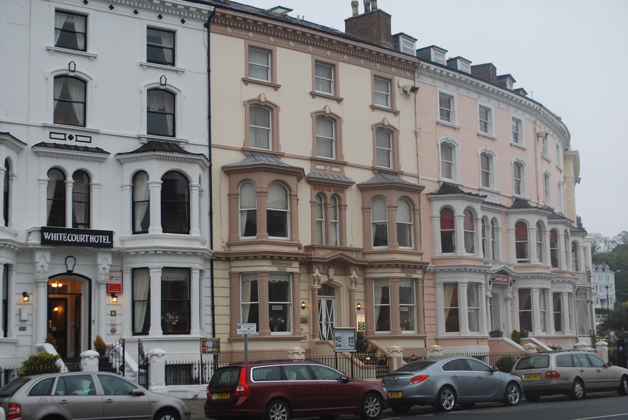 Each hotel has three storeys plus an attic except for Queen’s and St George’s on the corners where an additional storey was allowed to mark the end of the terrace.